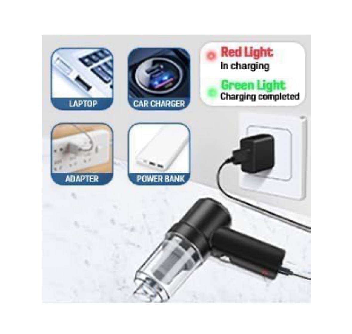 Experience versatile cleaning with this powerful 3-in-1 vacuum cleaner designed for both car and home use. Its compact, cordless design allows easy handling and portability, making it ideal for cleaning cars, bikes, sofas, and more. Equipped to handle wet and dry messes, it also features a blower function for thorough dust removal. This mini vacuum delivers deep cleaning performance in a convenient size, perfect for maintaining cleanliness in tight spaces and hard-to-reach areas.